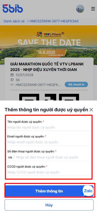 Bước 9: Điền đầy đủ thông tin người được ủy quyền, sau đó bấm thêm thông tin để hoàn thành.