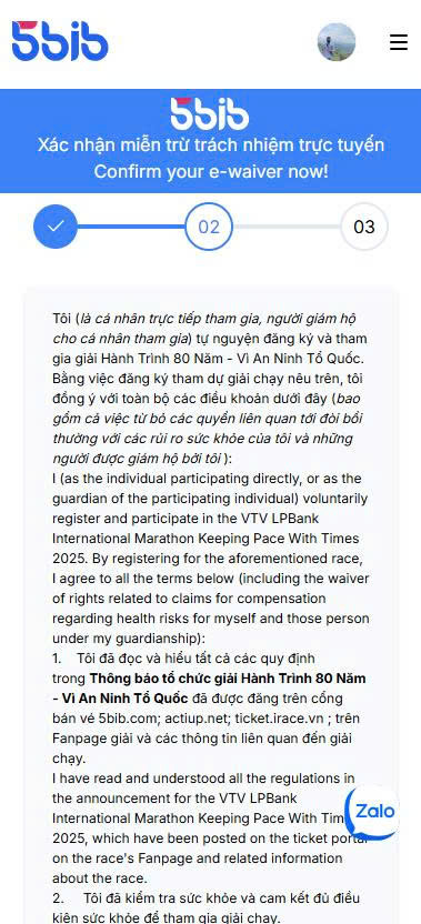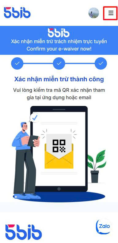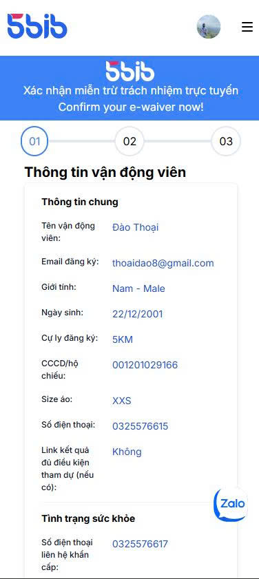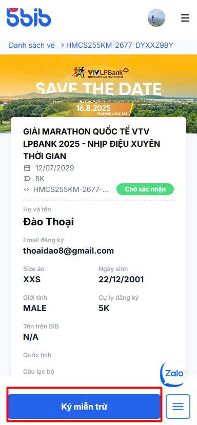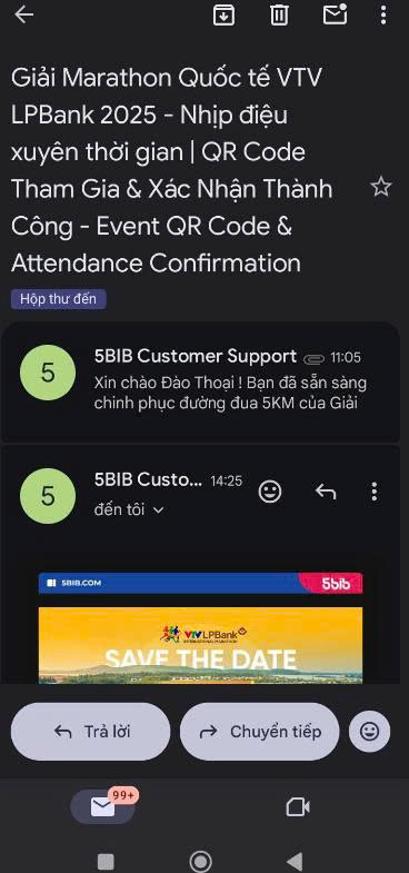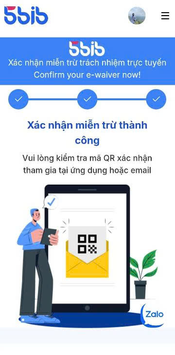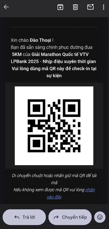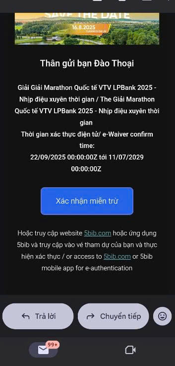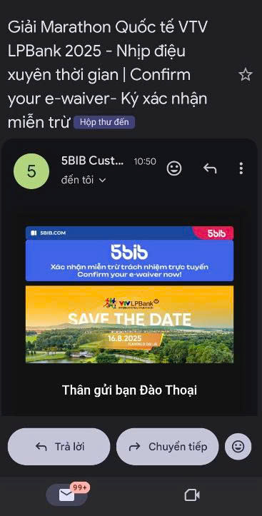 Bước 5: Kiểm tra email sau khi ký miễn trừ quyền người được ủy quyền cầm theo mã QR và CCCD để nhận racekit tại sự kiện